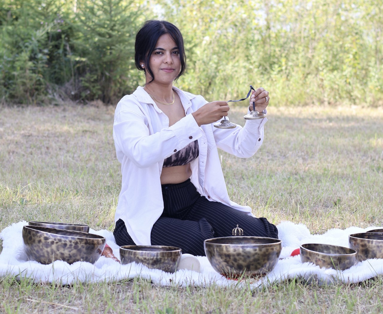 Swati is a certified yoga instructor and sound healing practitioner, and the founder of HealingwithSwati. Born and raised in India, she carries a deep appreciation for traditional healing wisdom and integrates it gently into her work today. Her practice is rooted in the lineage of Himalayan singing bowls, an ancient tradition historically used to support meditation, nervous-system regulation, and energetic balance. Through carefully tuned bowls placed on and around the body, the vibrations help the mind slow down, release stored tension, and invite the body into its natural state of harmony. At Shea Tree Wellness, Swati offers 1:1 sound healing therapy designed to meet each person where they are.